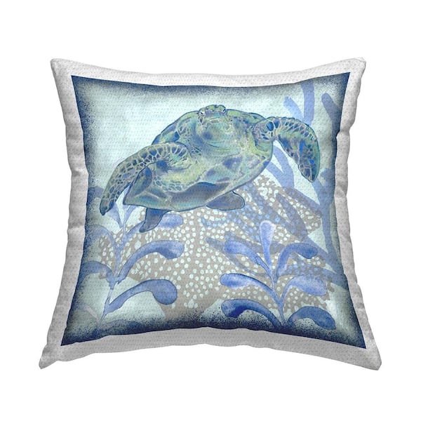 Blue Sea Life Tortoise Reef Blue Square Outdoor Throw Pillow