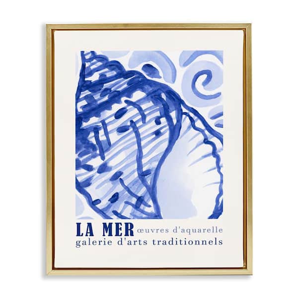 Blue Seashell Gallery Show by June Erica Vess Gold Floater Frame Coastal Graphic Art Print 31 in. x 25 in.