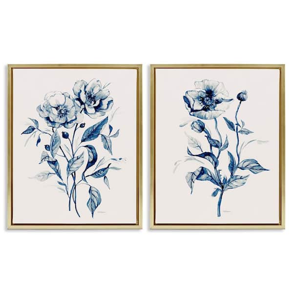 Blue Sketched Flowers by Carol Robinson 2-Pieces Gold Floater Frame Nature Graphic Art Print 21 in. x 17 in.