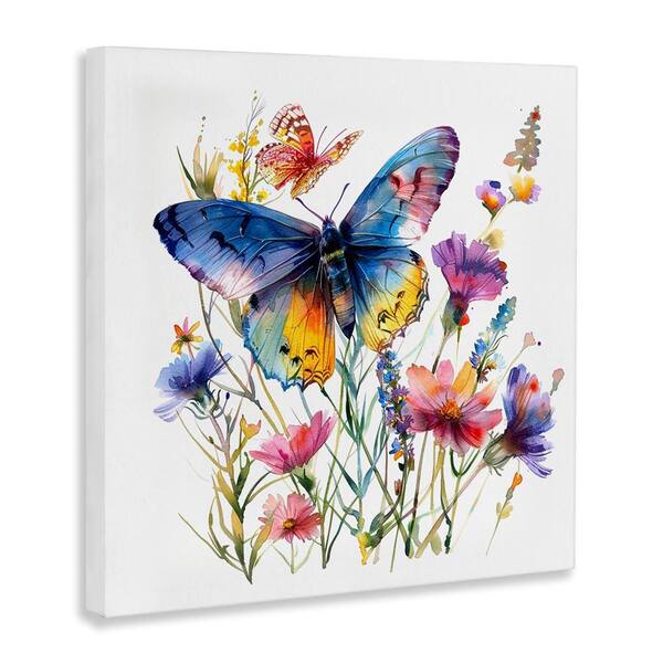Blue Toned Butterfly Garden by LSR Design Studio Unframed Animal Graphic Art Print 24 in. x 24 in.