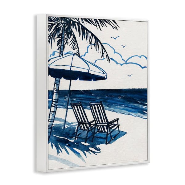 Blue Toned Tropical Beach Scene by Carol Robinson White Framed Nature Giclee Art Print 14 in. x 11 in.