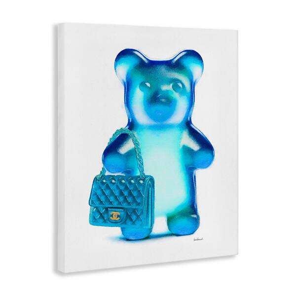 Blue Trendy Bear & Bag by Amanda Greenwood Unframed Abstract Graphic Art Print 48 in. x 36 in.