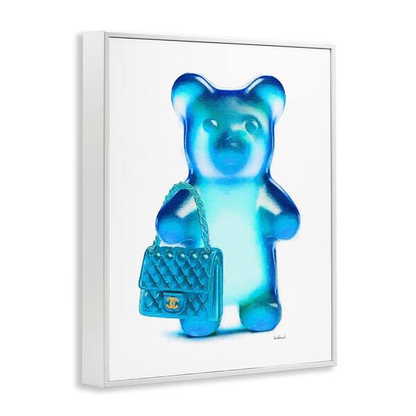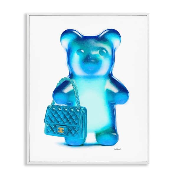 Blue Trendy Bear and Bag by Amanda Greenwood White Framed Abstract Giclee Art Print 30 in. x 24 in.