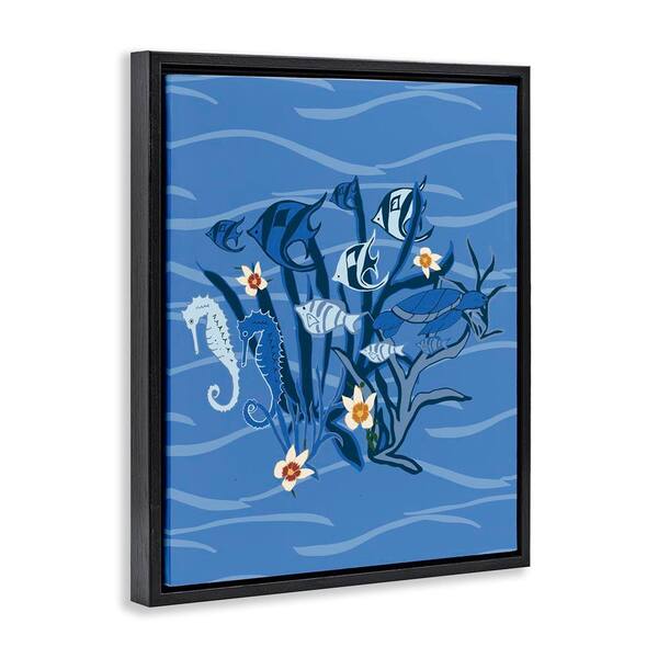 Blue Undersea Critters by Michelle Ingari Designs Black Floater Frame Coastal Graphic Art Print 31 in. x 25 in.