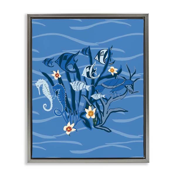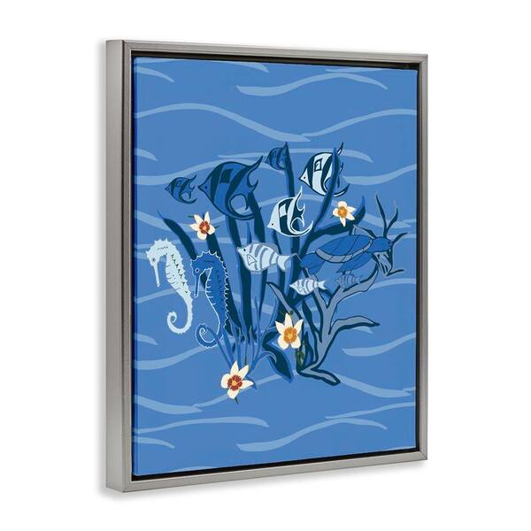 Blue Undersea Critters by Michelle Ingari Designs Gray Floater Frame Coastal Graphic Art Print 21 in. x 17 in.