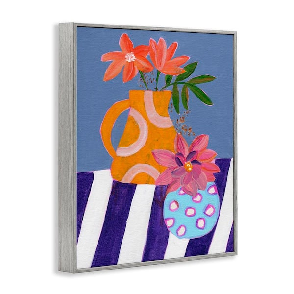 Blue Whimsy Farm Vase by Nikita Jariwala Gray Framed Nature Giclee Art Print 30 in. x 24 in.