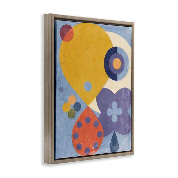Blue & Yellow Retro by Victoria Barnes Brown Floater Frame Abstract Graphic Art Print 21 in. x 17 in.