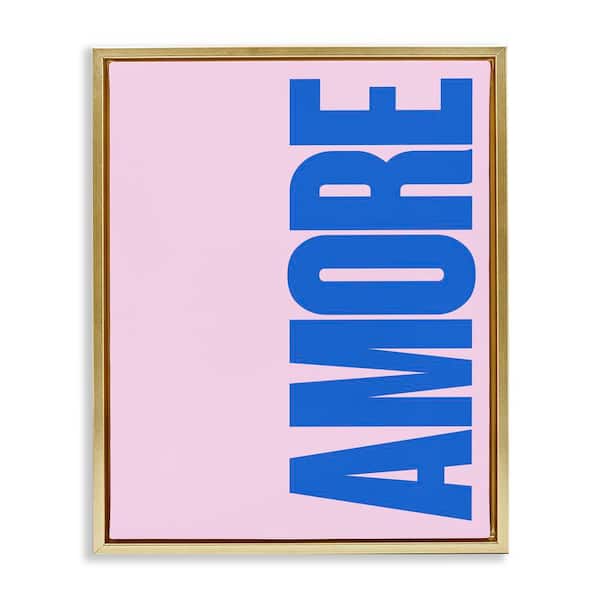 Blue and Pink Amor by House of Lulu Gold Floater Frame Typography Graphic Art Print 31 in. x 25 in.