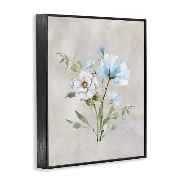 Blue and White Herbs by Livi Finn Black Framed Nature Giclee Art Print 30 in. x 24 in.