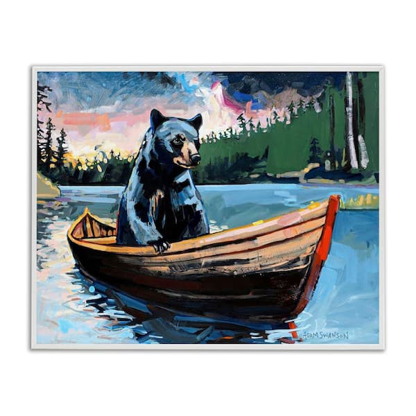Boating Black Bear by Adam Swanson White Framed Animal Giclee Art Print 24 in. x 30 in.
