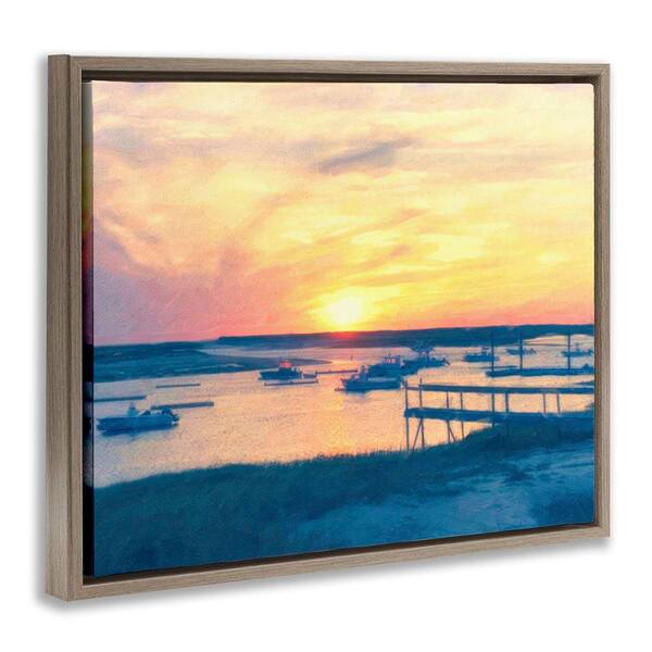 Boats Illuminated at Sunset by Graffi tee Studios Brown Floater Frame Nature Graphic Art Print 17 in. x 21 in.