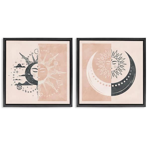 Boho 2-Tone Moon Sun by Nina Blue 2-Pieces Black Floater Frame Religious Graphic Art Print 25 in. x 25 in.
