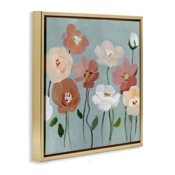 Boho Blooms on Blue by Charity Henderson Gray Floater Frame Nature Graphic Art Print 18 in. x 18 in.