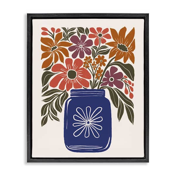 Boho Blossoms Vase by Loni Harris Black Floater Frame Nature Graphic Art Print 31 in. x 25 in.