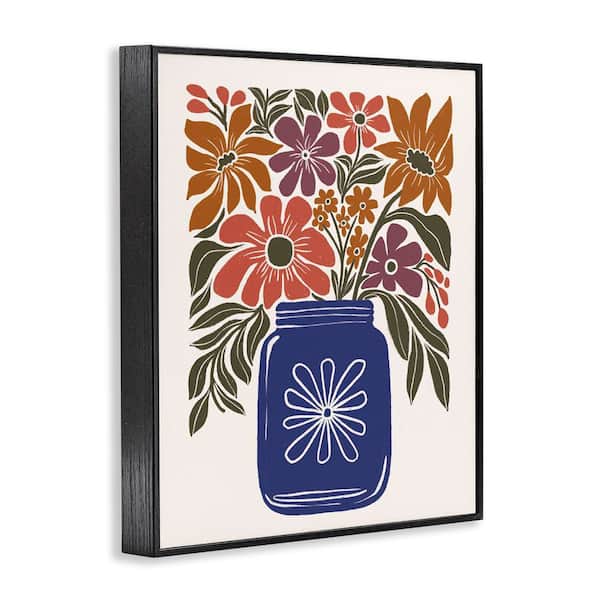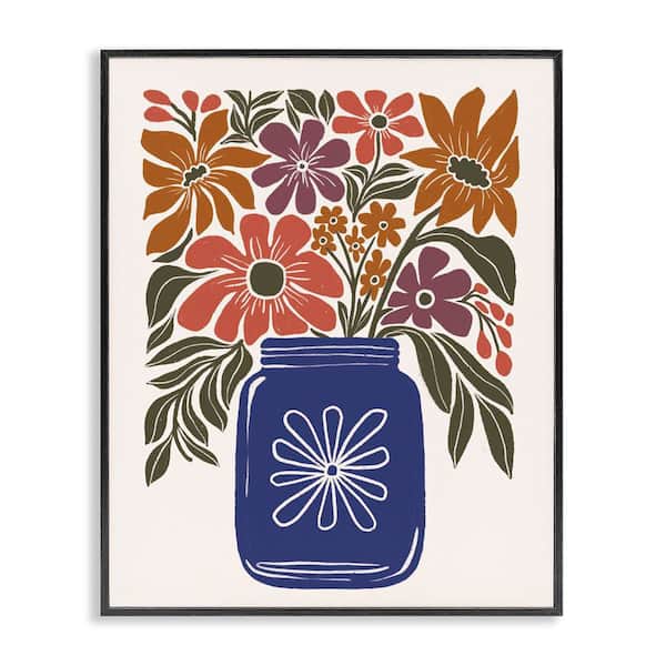 Boho Blossoms Vase by Loni Harris Black Framed Nature Giclee Art Print 14 in. x 11 in.