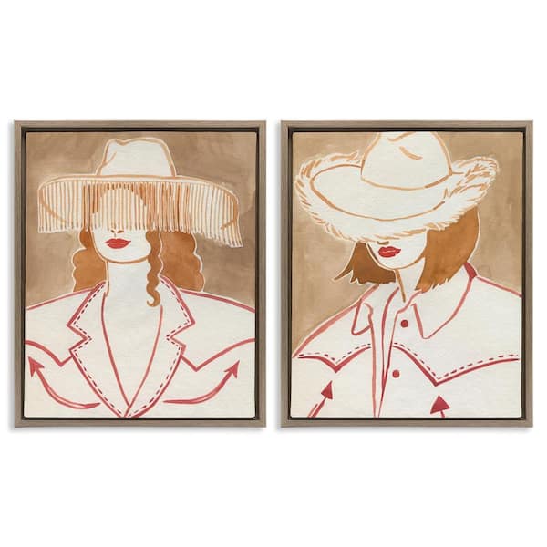 Boho Cowgirls in Hats by Grace Popp 2-Pieces Brown Floater Frame People Graphic Art Print 31 in. x 25 in.