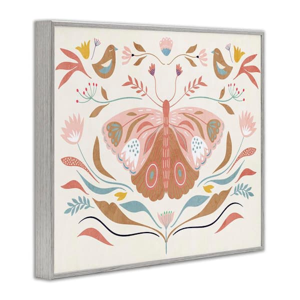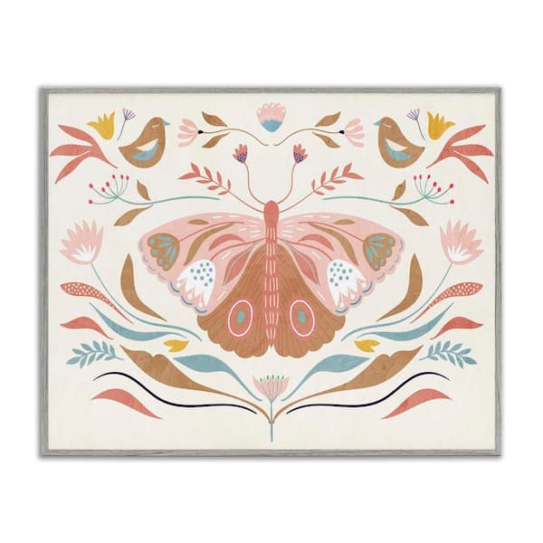 Boho Folk Moth by Kim Allen Gray Framed Animal Giclee Art Print 16 in. x 20 in.