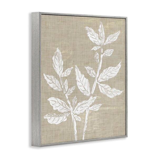 Boho Leaves on Natural Pattern by Melissa Wang Gray Framed Nature Giclee Art Print 30 in. x 24 in.