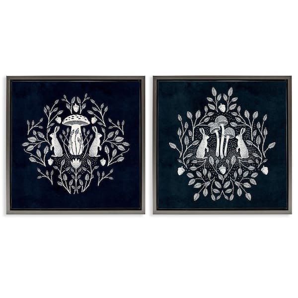 Boho Mirrored Floral Bunnies by Katie O'Shea 2 Pieces Gray Floater Frame Animal Graphic Art Print 25 in. x 25 in.