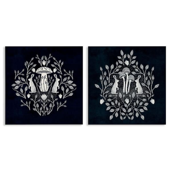 Boho Mirrored Floral Bunnies by Katie O'Shea 2 Pieces Unframed Animal Graphic Art Print 17 in. x 17 in.