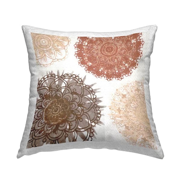Boho Ornate Floral Patterns Brown Square Outdoor Throw Pillow