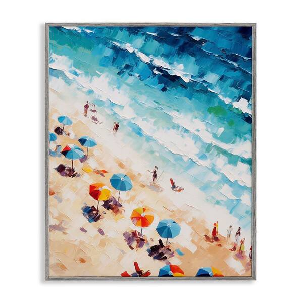 Bold Beachgoers Hues by Arlington Prints Gray Framed Coastal Giclee Art Print 30 in. x 24 in.