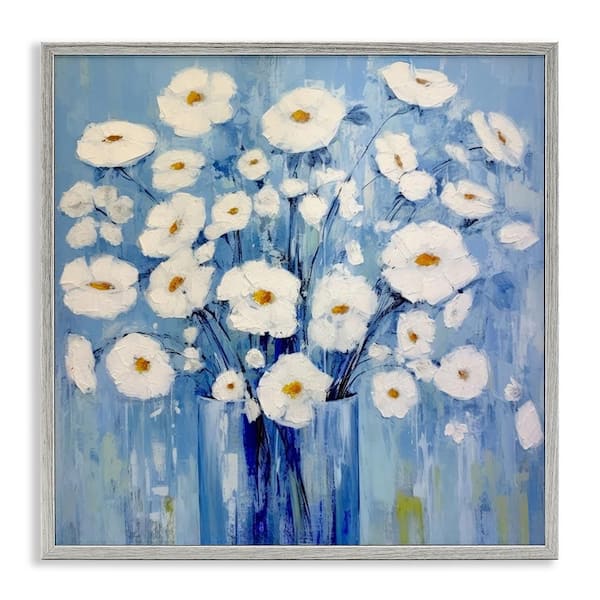 Bold Blooms on Blue by Irena Orlov Gray Framed Nature Giclee Art Print 17 in. x 17 in.