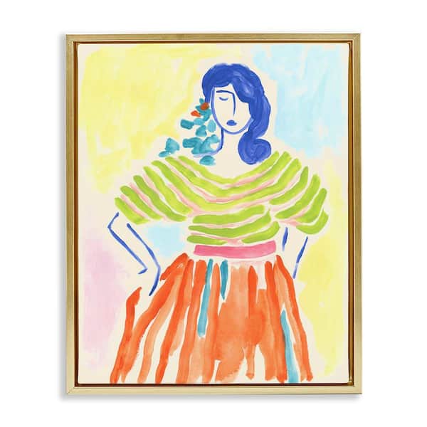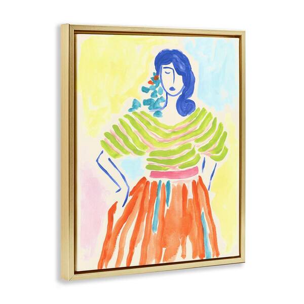 Bold Hued Fashion by June Erica Vess Gold Floater Frame People Graphic Art Print 31 in. x 25 in.