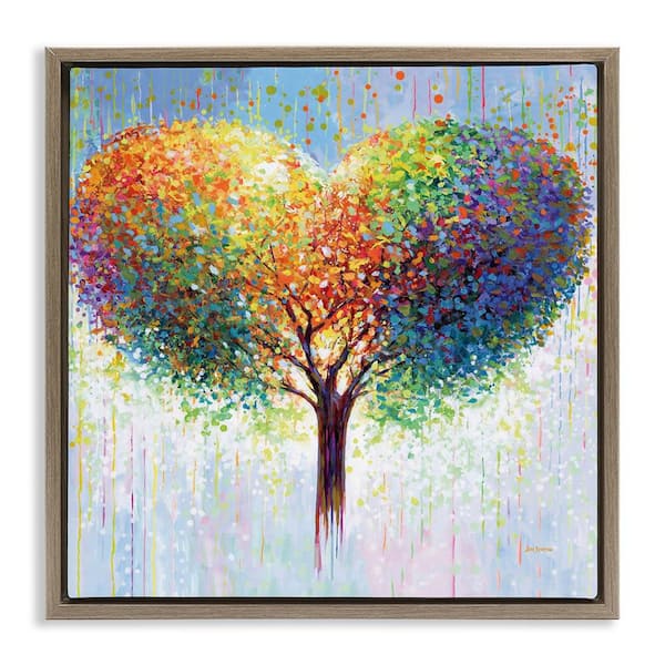 Bold Hued Heart Tree by Leon Devenice Brown Floater Frame Nature Graphic Art Print 18 in. x 18 in.