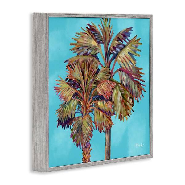 Bondi Palms on Blue by Paul Brent Gray Framed Nature Giclee Art Print 24 in. x 24 in.