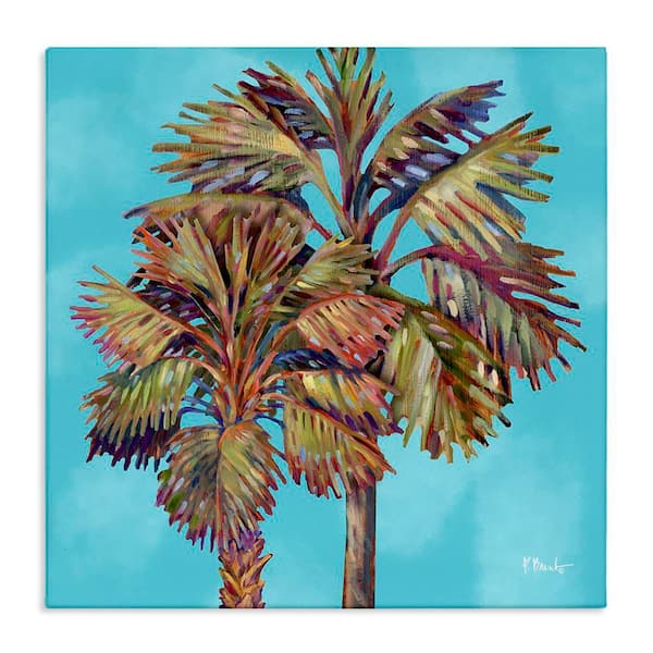 Bondi Palms on Blue by Paul Brent Unframed Nature Graphic Art Print 24 in. x 24 in.