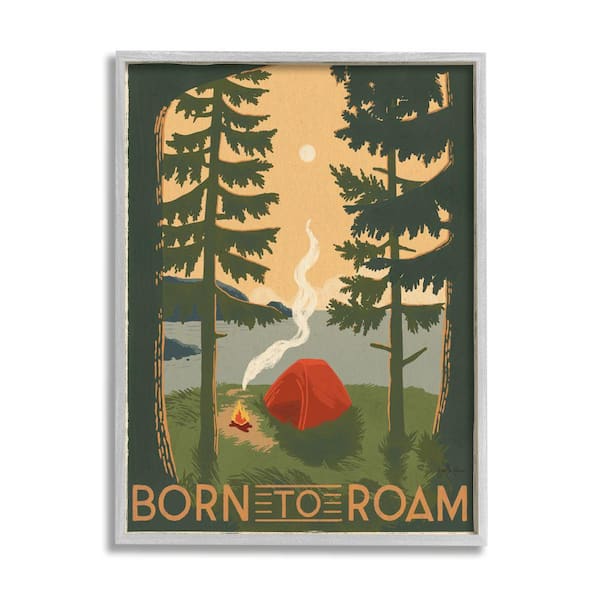 Born to Roam Phrase Rustic Camping Tent By Janelle Penner Framed Print Typography Texturized Art 11 in. x 14 in.
