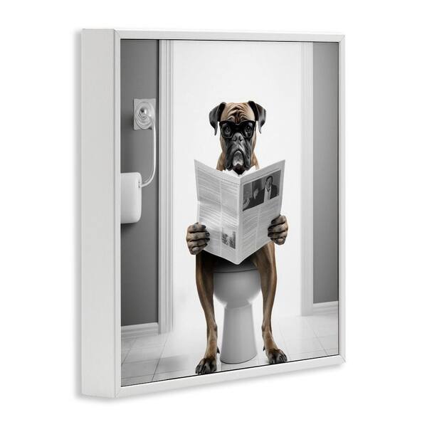 Boxer Dog and Newspaper by Lazar Studio 1-Piece White Framed Animal Giclee Art Print 12 in. x 12 in.