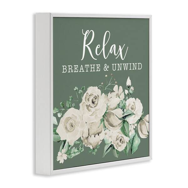 Breathe and Unwind with Florals by Masey St. Studios White Framed Typography Giclee Art Print 24 in. x 24 in.