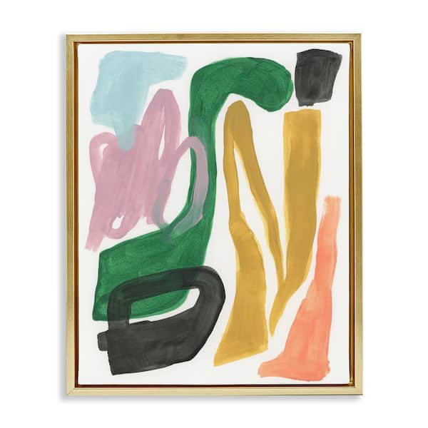 Bright Contemporary Shapes by June Erica Vess Gold Floater Frame Abstract Graphic Art Print 31 in. x 25 in.