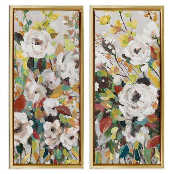 Bright Cottage Gardens by Carol Robinson 2-Pieces Gold Floater Frame Nature Graphic Art Print 31 in. x 15 in.