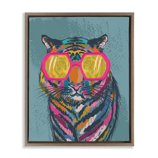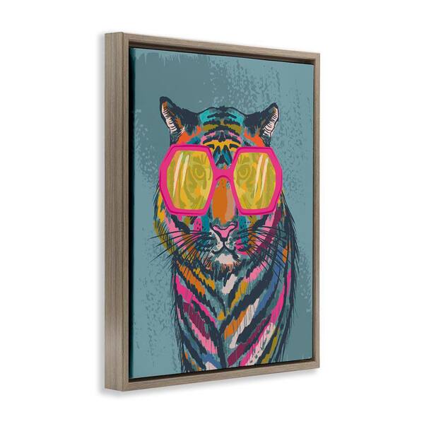 Bright Fashion Tiger by Lisa Perry Whitebutton Brown Floater Frame Animal Graphic Art Print 21 in. x 17 in.