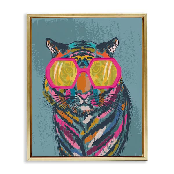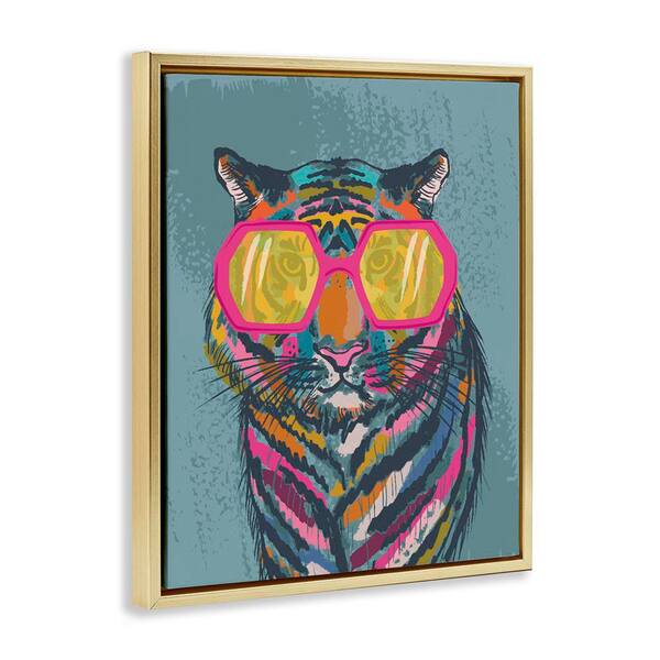 Bright Fashion Tiger by Lisa Perry Whitebutton Gold Floater Frame Animal Graphic Art Print 21 in. x 17 in.