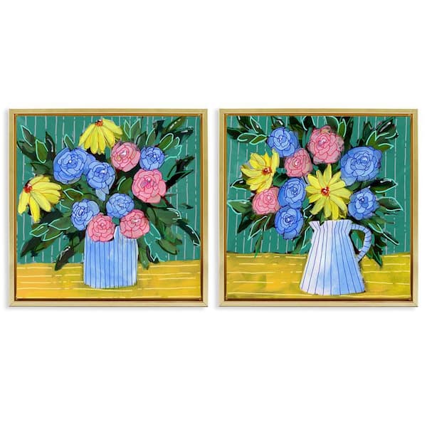 Bright Flowers on Stripes by Regina Moore 2 Pieces Gold Floater Frame Nature Graphic Art Print 18 in. x 18 in.
