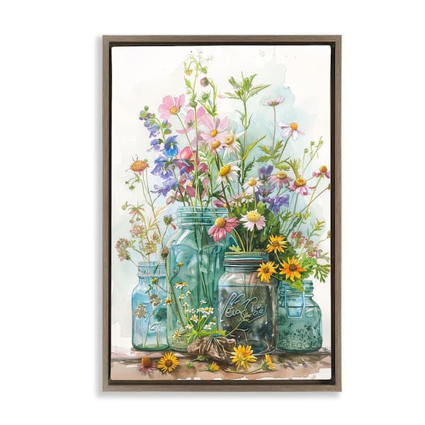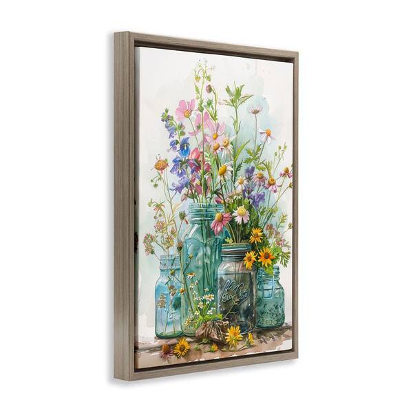 Bright Garden Blooms Jars by Franklyn Gregory Brown Floater Frame Nature Graphic Art Print 31 in. x 21 in.