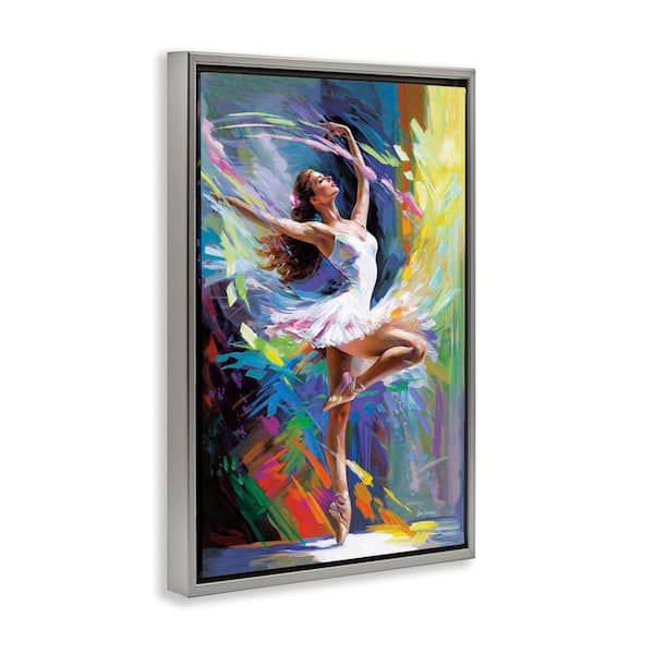Bright Hued Dancing Ballerina by Leon Devenice Gray Floater Frame People Graphic Art Print 25 in. x 17 in.