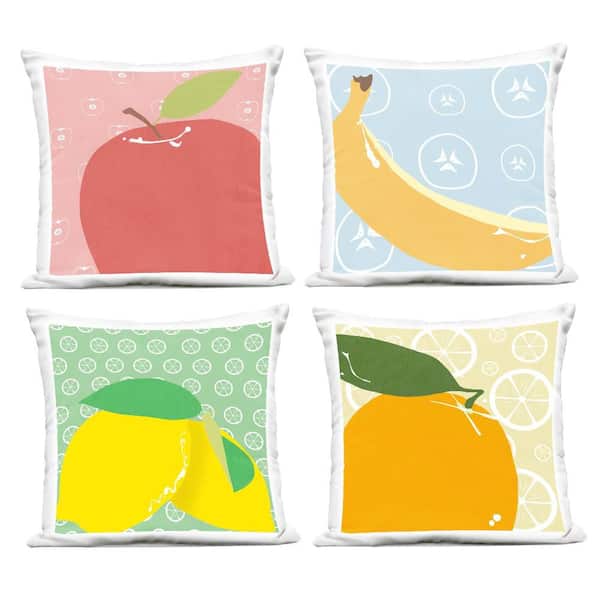Bright Kitchen Fruits Multi-Color Square Outdoor Throw Pillow (4-Pack)