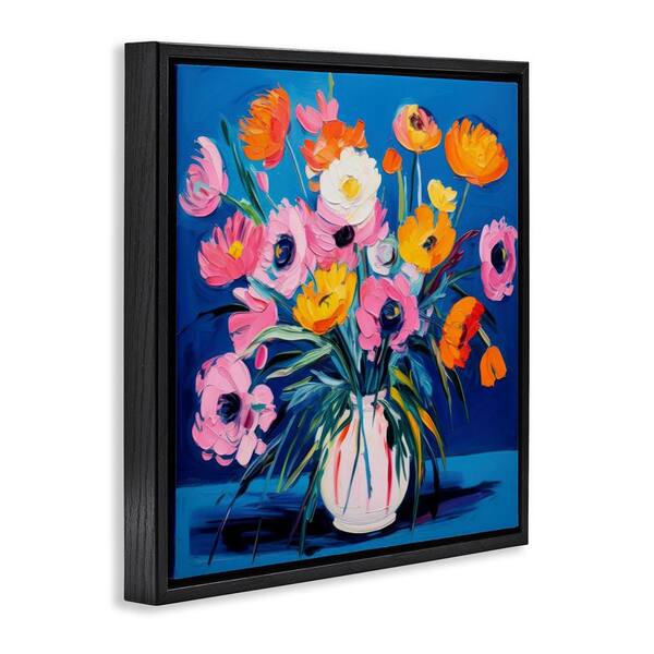 Bright Poppies Bouquet by LSR Design Studio Black Floater Frame Nature Graphic Art Print 25 in. x 25 in.