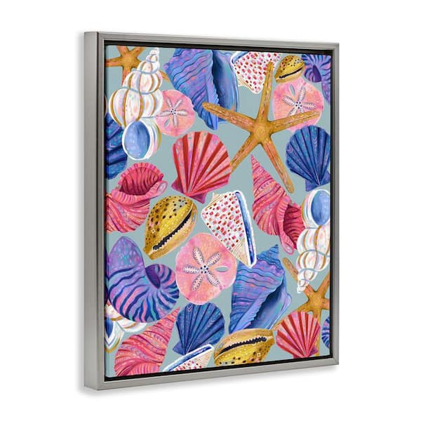 Bright Seashells Assortment by Arrolynn Weiderhold Gray Floater Frame Coastal Graphic Art Print 21 in. x 17 in.