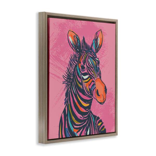 Bright Stripes Zebra by Lisa Perry Whitebutton Brown Floater Frame Animal Graphic Art Print 31 in. x 25 in.