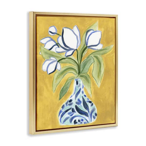 Bright Tulips in Vase by June Erica Vess Gold Floater Frame Nature Graphic Art Print 21 in. x 17 in.
