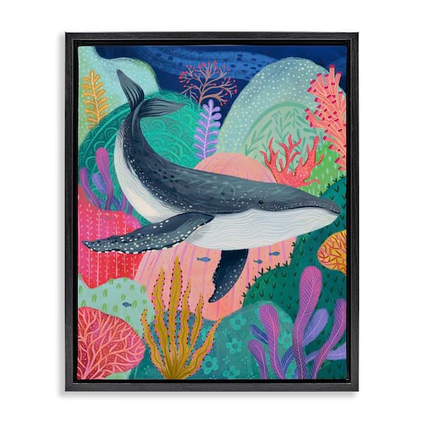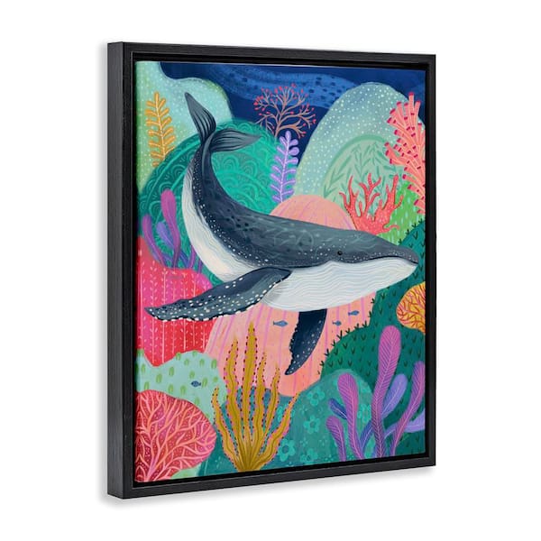 Bright Whale and Sea Coral by Arrolynn Weiderhold Black Floater Frame Coastal Graphic Art Print 31 in. x 25 in.