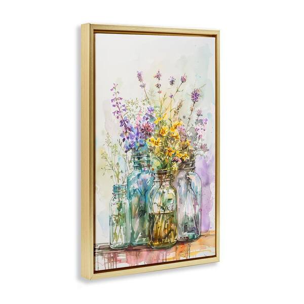 Bright Wildflower Jars by Franklyn Gregory Gold Floater Frame Nature Graphic Art Print 25 in. x 17 in.