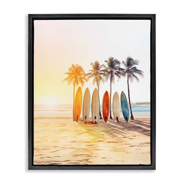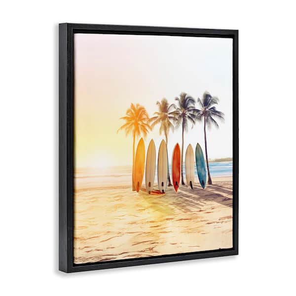 Brightly Hued Surfboards by Arlington Prints Black Floater Frame Coastal Graphic Art Print 31 in. x 25 in.