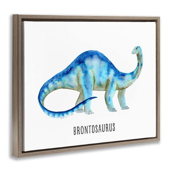 Brontosaurus Dinosaur Learning by Brett Blumenthal Brown Floater Frame Animal Graphic Art Print 17 in. x 21 in.